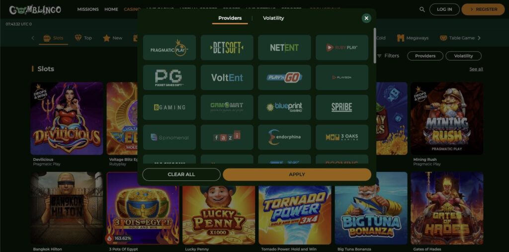 Types of games and providers